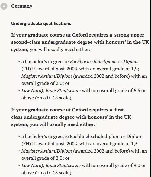 牛津大學(xué)對(duì)德國(guó)本科分?jǐn)?shù)要求: