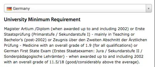 ▎各種德國(guó)文憑均需要至少1.9;第一司法考試分?jǐn)?shù)需要至少11.5/18