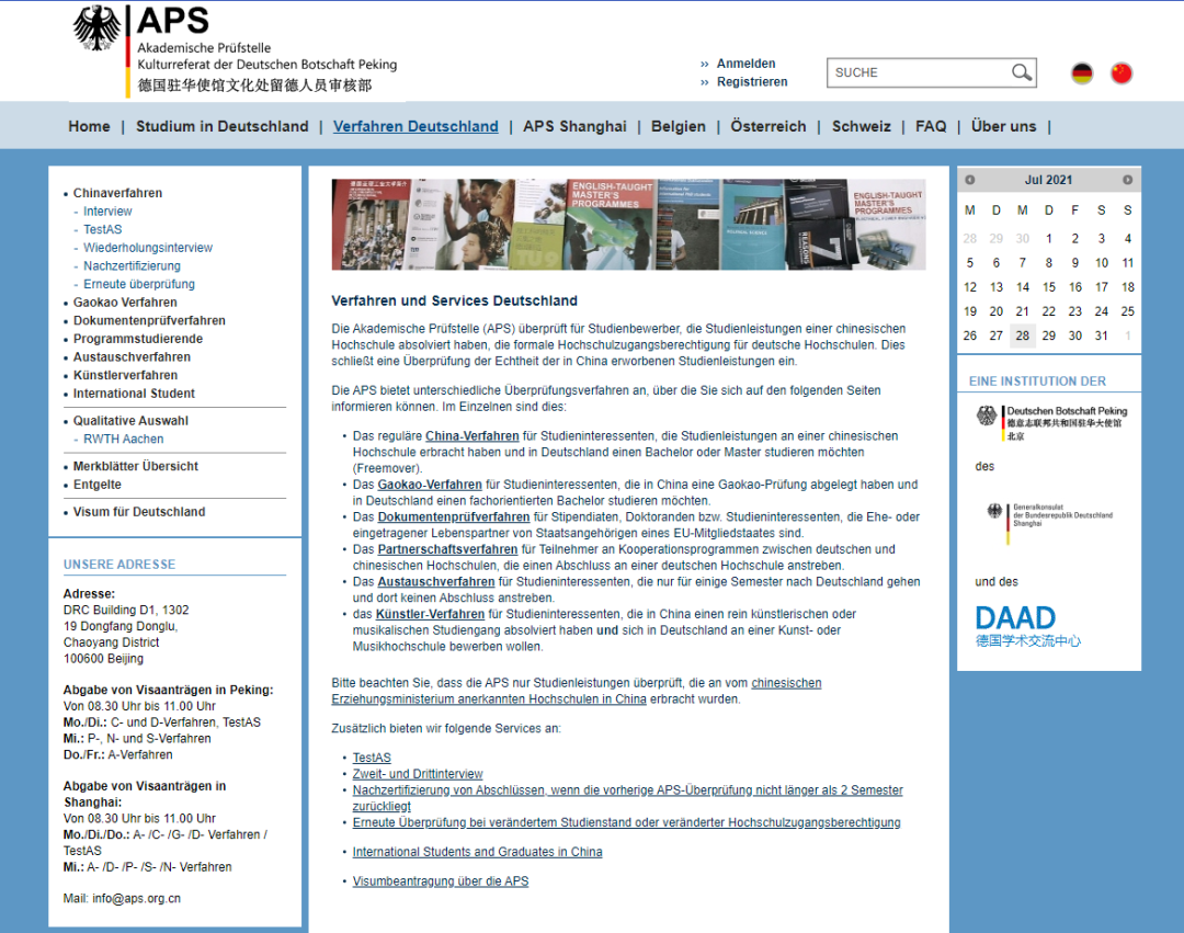 留學(xué)簽證、留學(xué)學(xué)預(yù)備簽證以及大學(xué)交流項目簽證申請也在留德人員審核部(APS)遞交。遞交簽證申請的地點(diǎn)、時間等信息可以去APS官網(wǎng)查看。