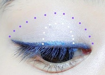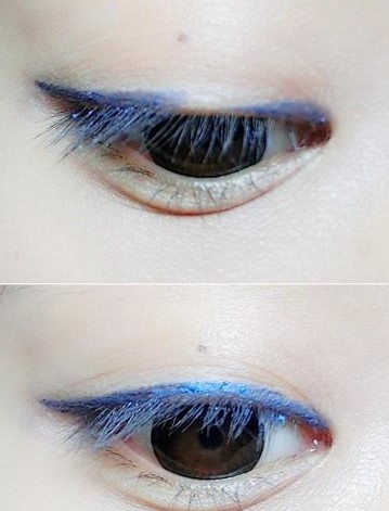 步驟三:接著就是化眼妝,選擇一款藍(lán)色的眼線液筆,在眼皮和睫毛根部位置畫上一條優(yōu)美的線條,眼尾的位置可以適當(dāng)?shù)淖冮L。