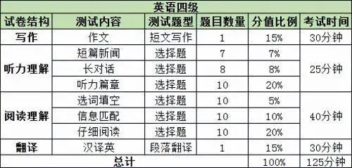 2023年英語四級題型介紹詳細(xì) 各題型分值是多少