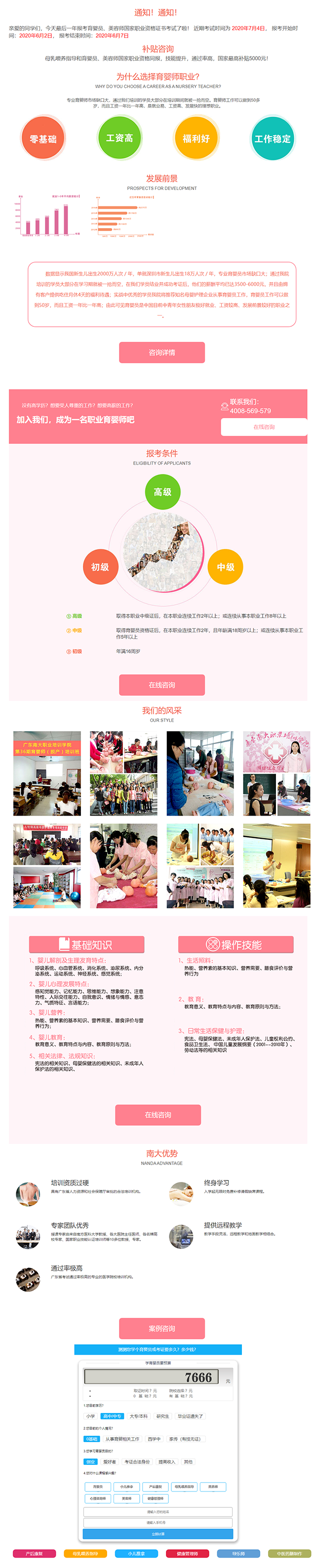 專業(yè)育嬰師市場缺口大,通過我們培訓的學員大部分在培訓期間就被一搶而空。育嬰師工作可以做到50多歲,而且工資一年比一年高,是就業(yè)易、工資高、發(fā)展快的理想職業(yè)。